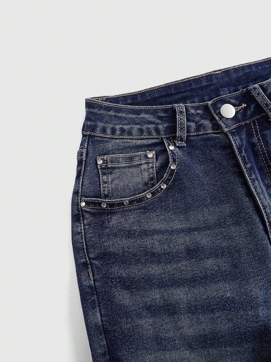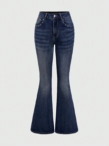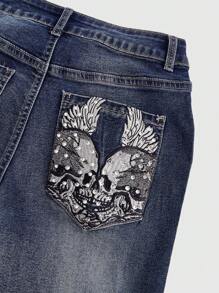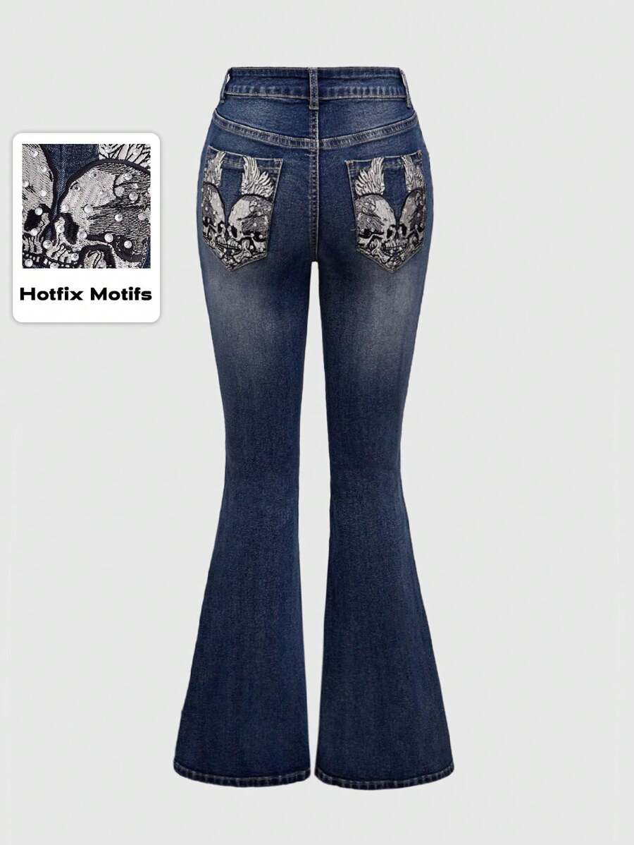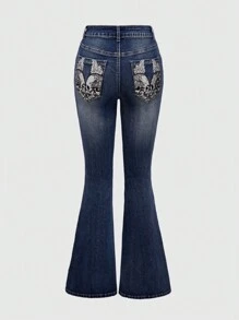 Grunge Punk Vintage Punk Style Embroidered Flared Jeans For Women, Slim Fit