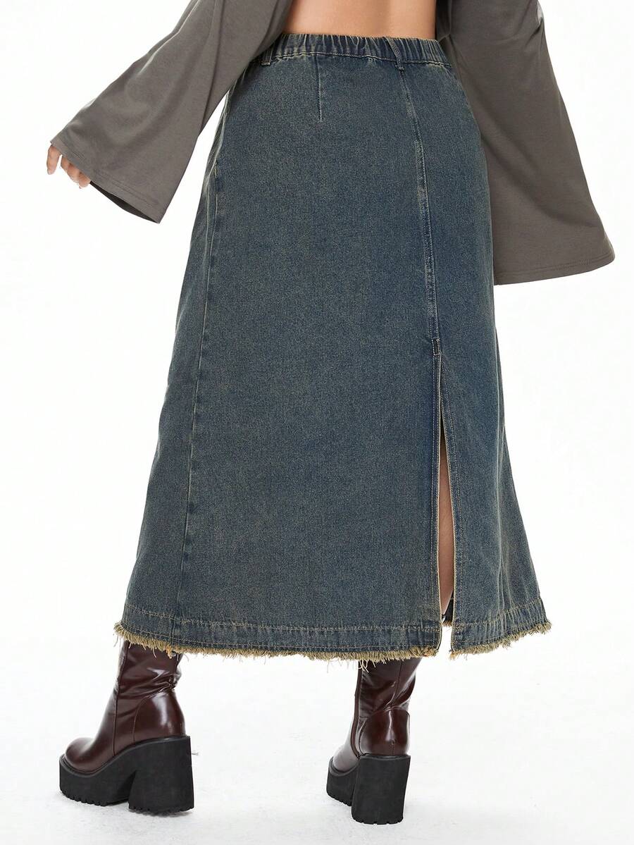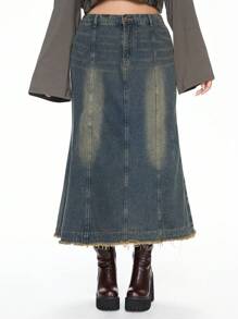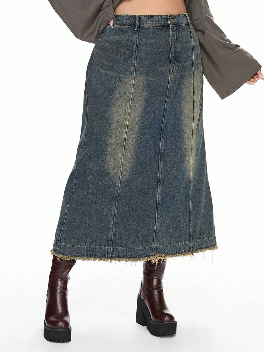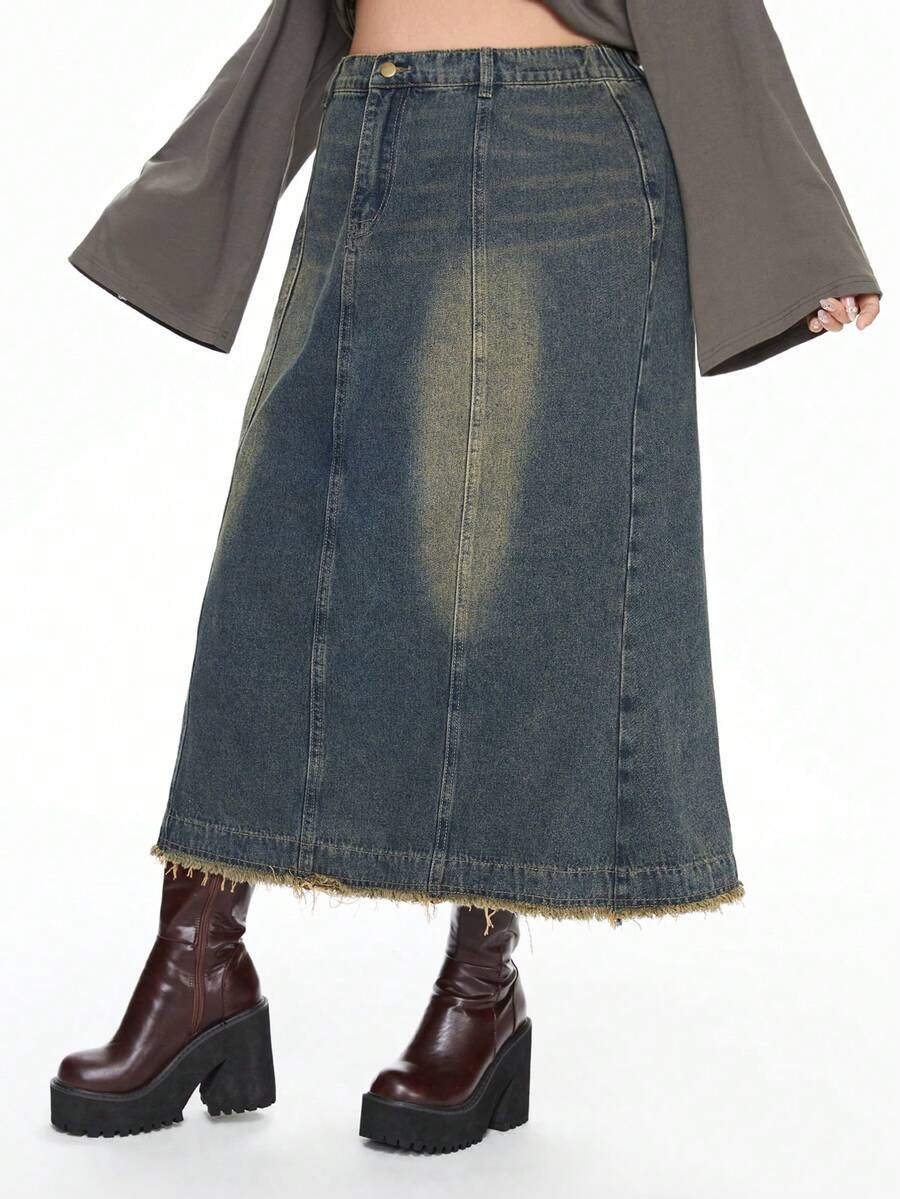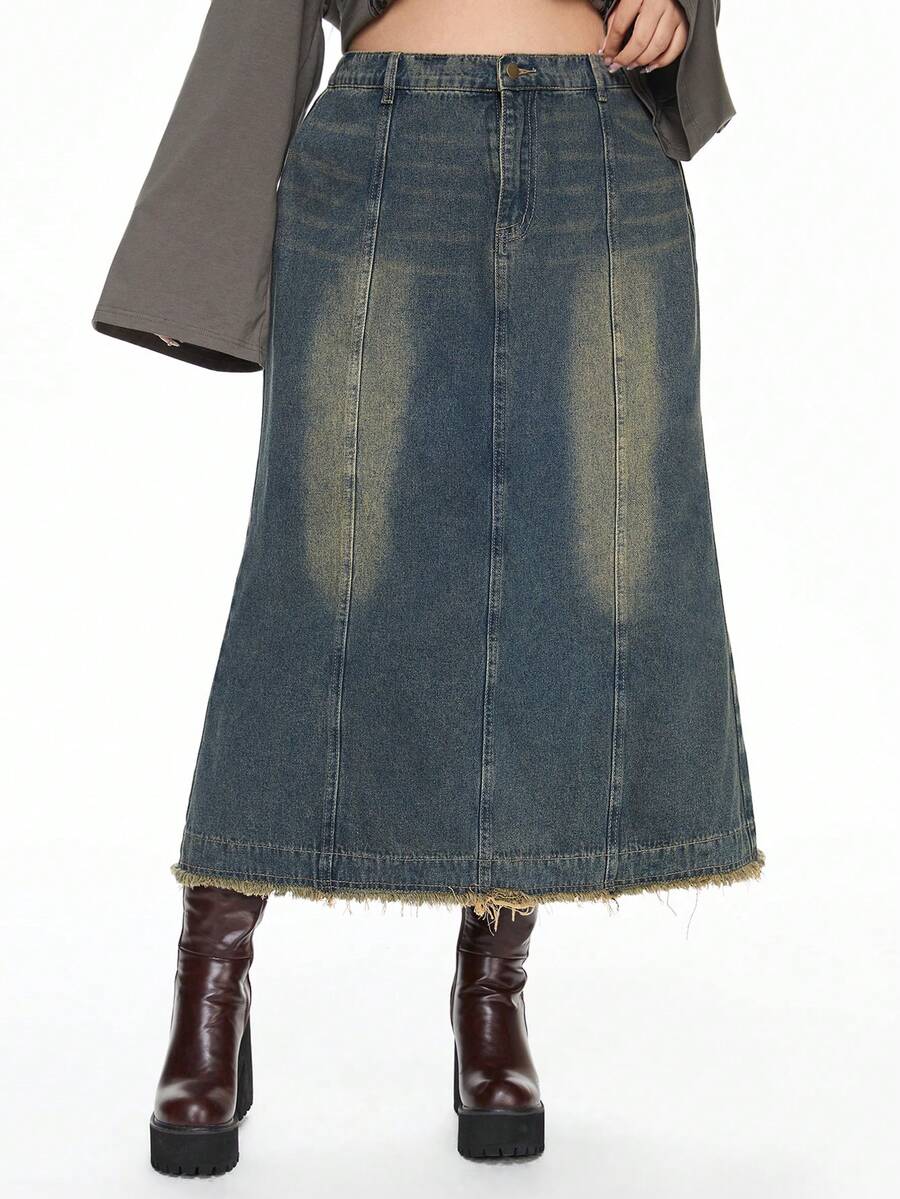 Grunge Punk Vintage Washed Punk Rock Style Casual All-Match Plus Size Denim Mini Skirt