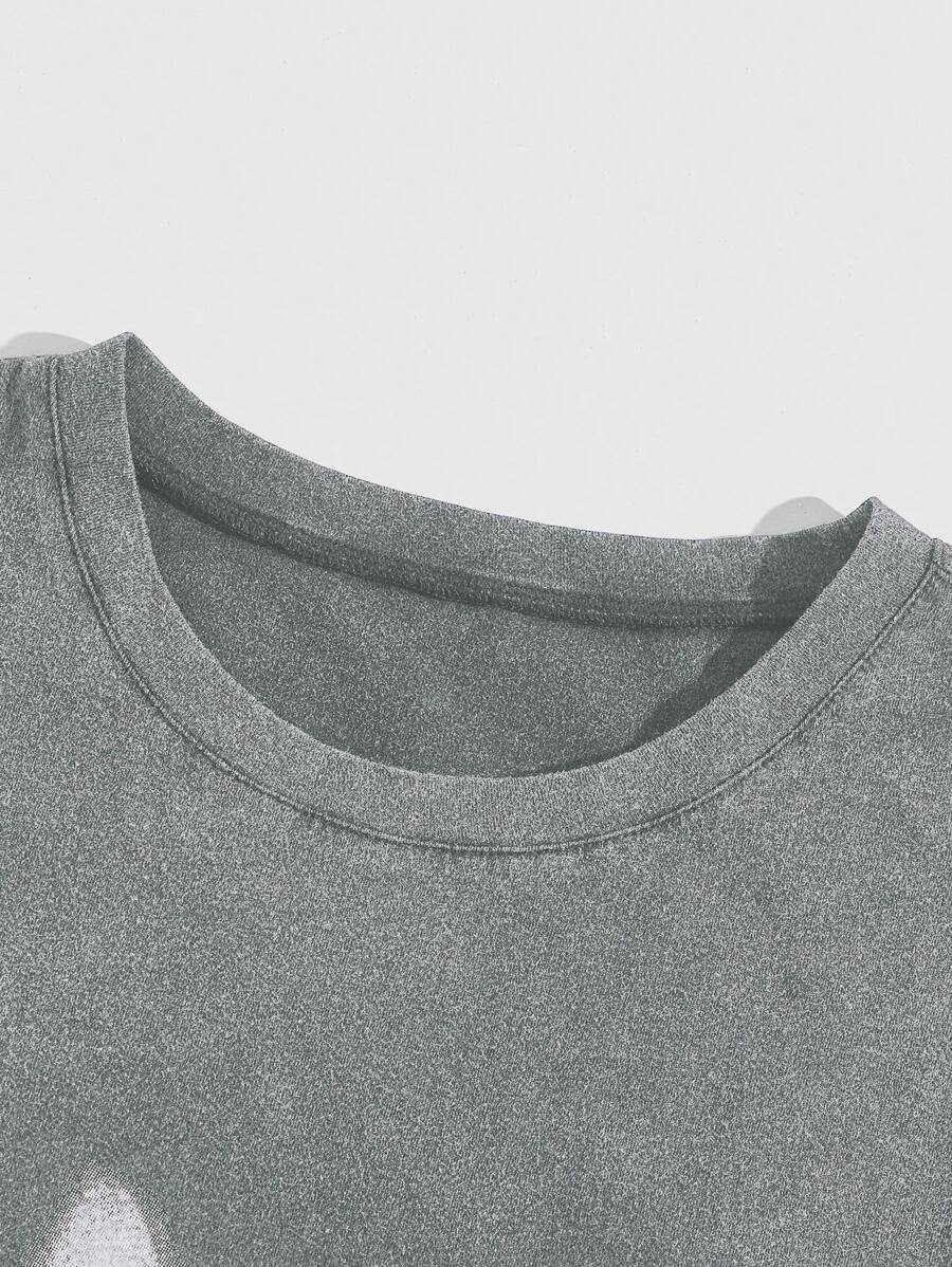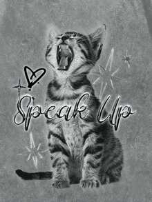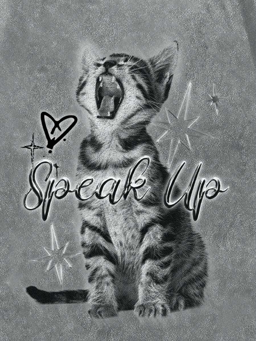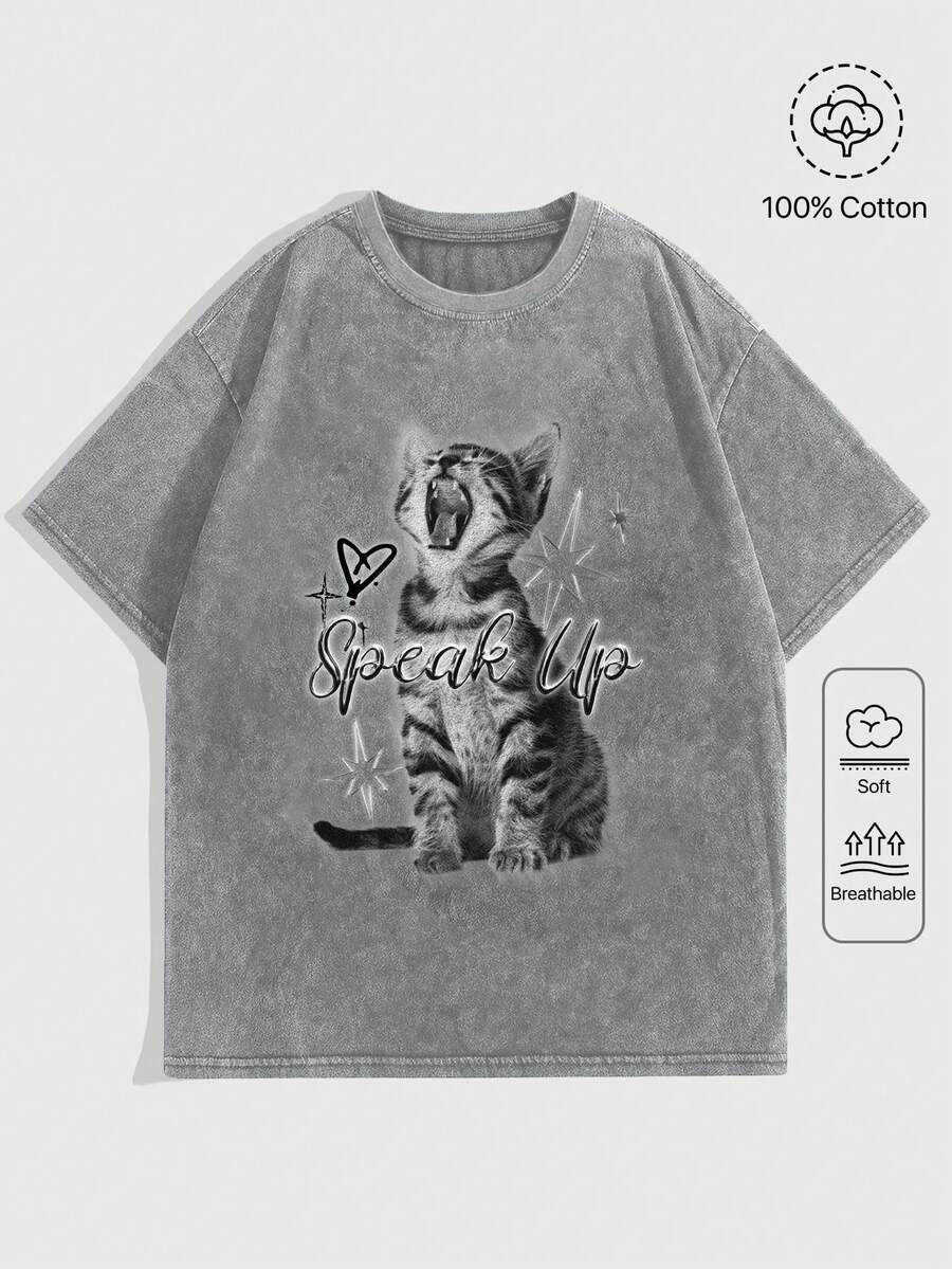 Grunge Punk Vintage Washed Snowflake Frying Fun Cat Print Women's Oversized T-Shirt, School