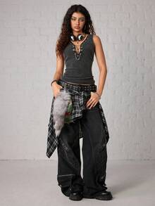 Grunge Punk Vintage Women's Distressed Eyelet Chain Strap Streetwear Tank Top