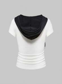 Grunge Punk Vintage Y2K Concert, Punk Skull Print 2-In-1 Contrast Color Women Tight Fitting Short Sleeve T-Shirt
