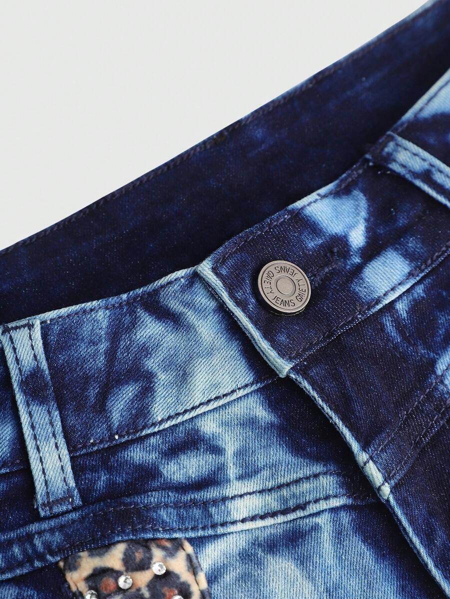 Grunge Punk Vintage Y2K Sexy Low Waist Leopard Print Patchwork Distressed Street Leopard Denim Shorts For Women