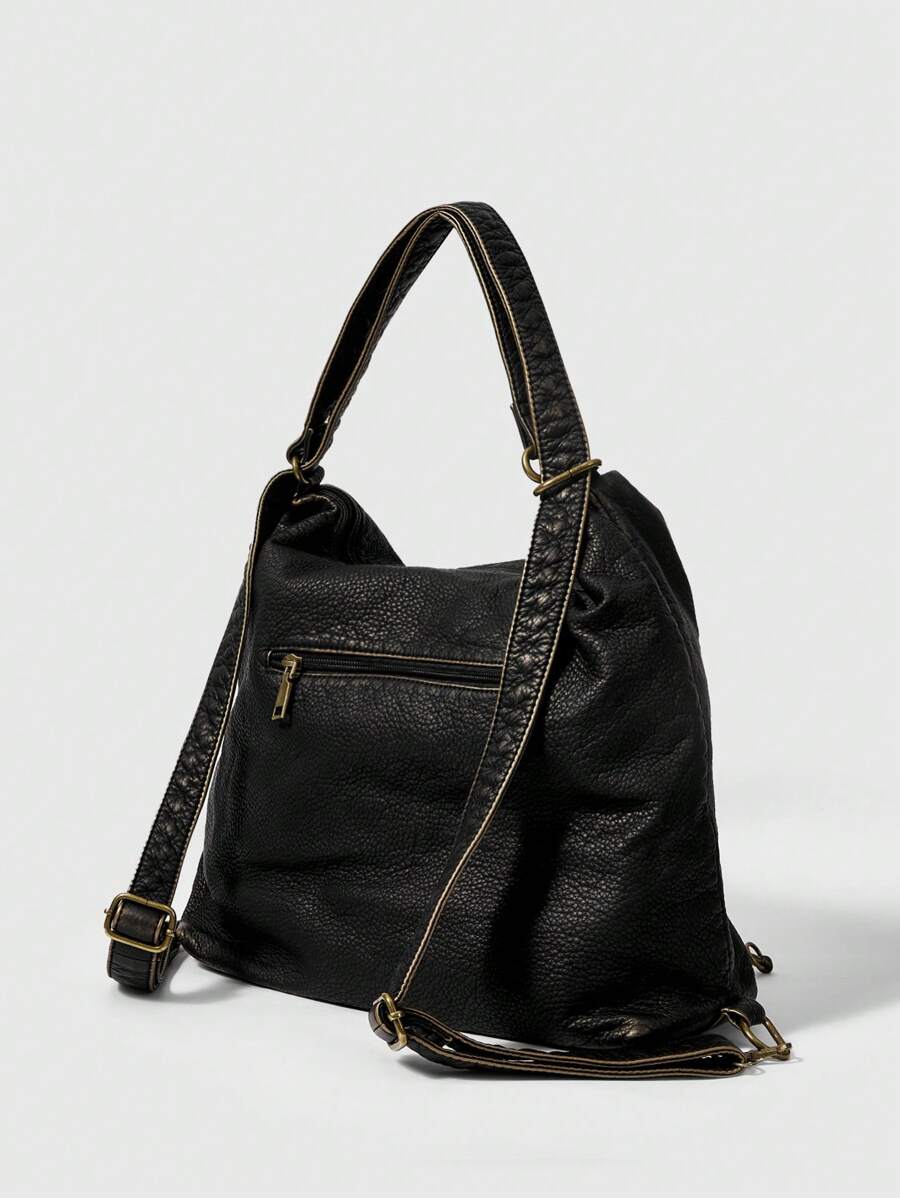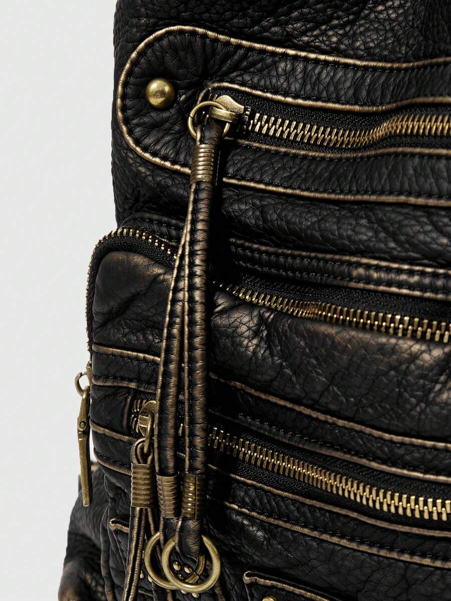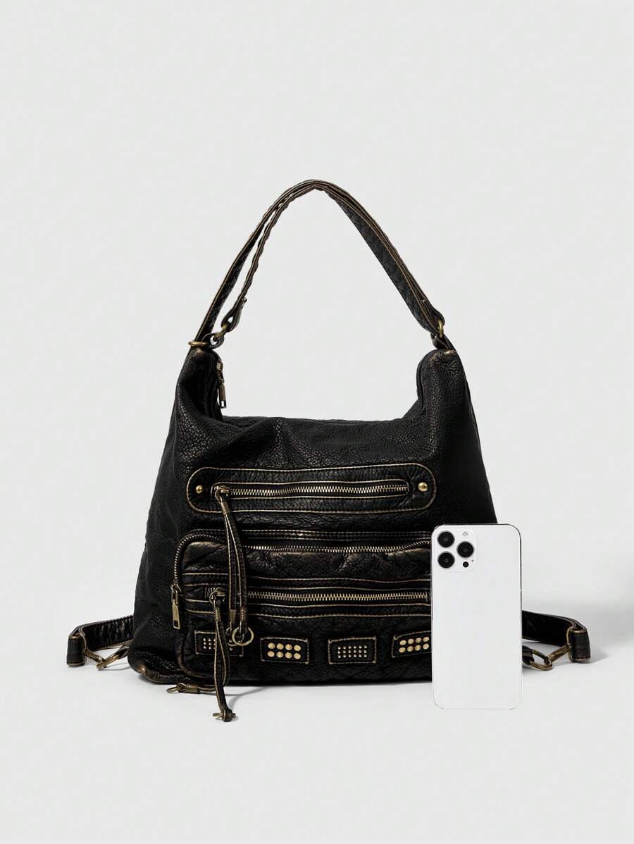 Grunge Punk Washed Multi Pocket Multipurpose Shoulder Bag For Daily Outing