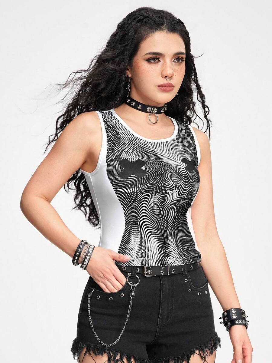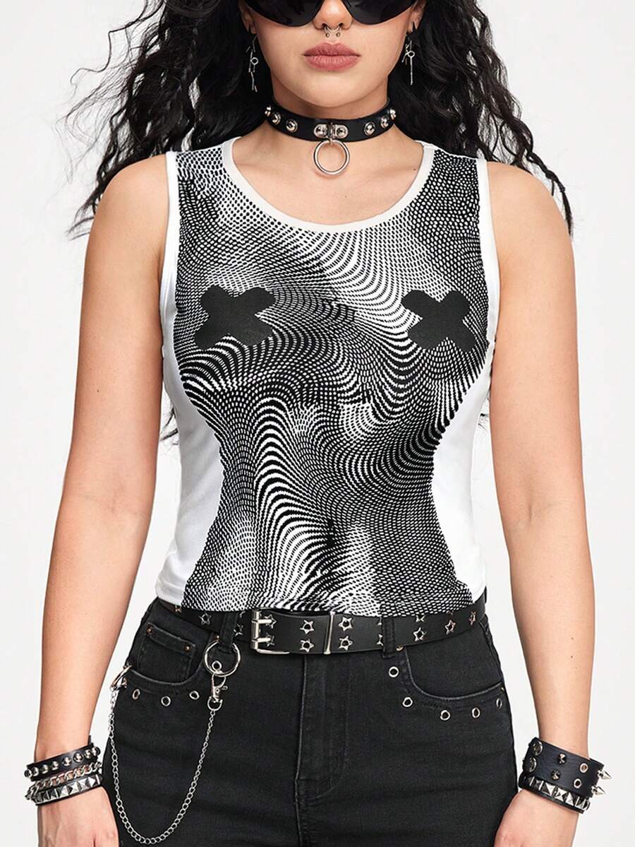 Grunge Punk Women Body Print Sleeveless Slim Fit Tank Top
