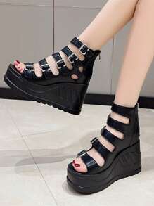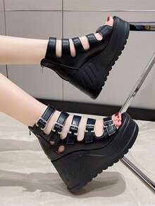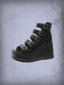 Grunge Punk Women Buckle Decor Wedge Sandals, Fashion Outdoor Sandals