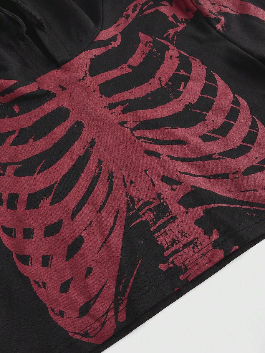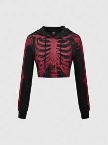 Grunge Punk Women Dark Gothic Skull Print Cropped Sweatshirt