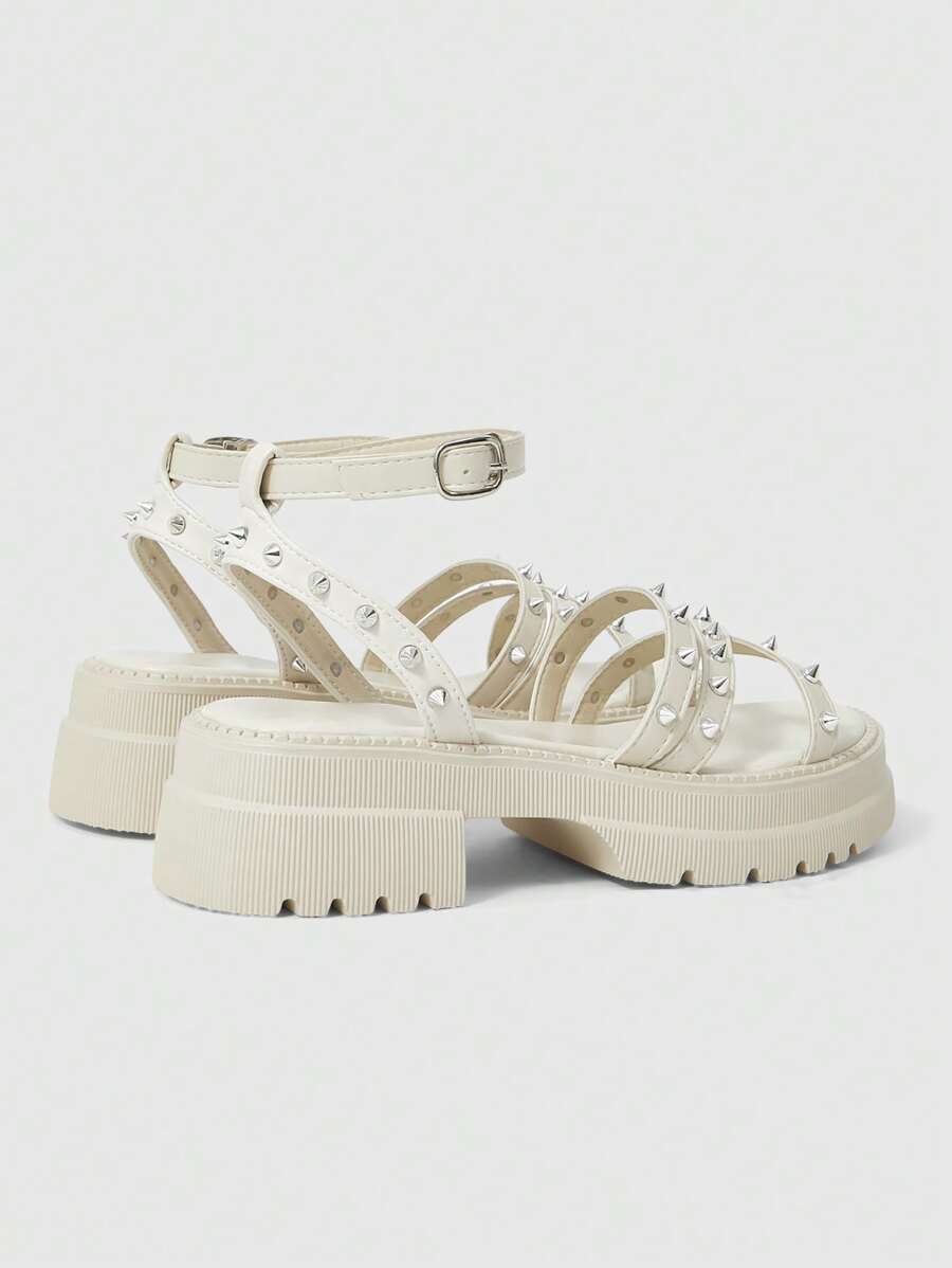 Grunge Punk Women Gothic Punk Style Crossed-Strap Buckle Platform Sandals, Summer Open Toe Roman Holiday Beach Riveted Wedge Heels