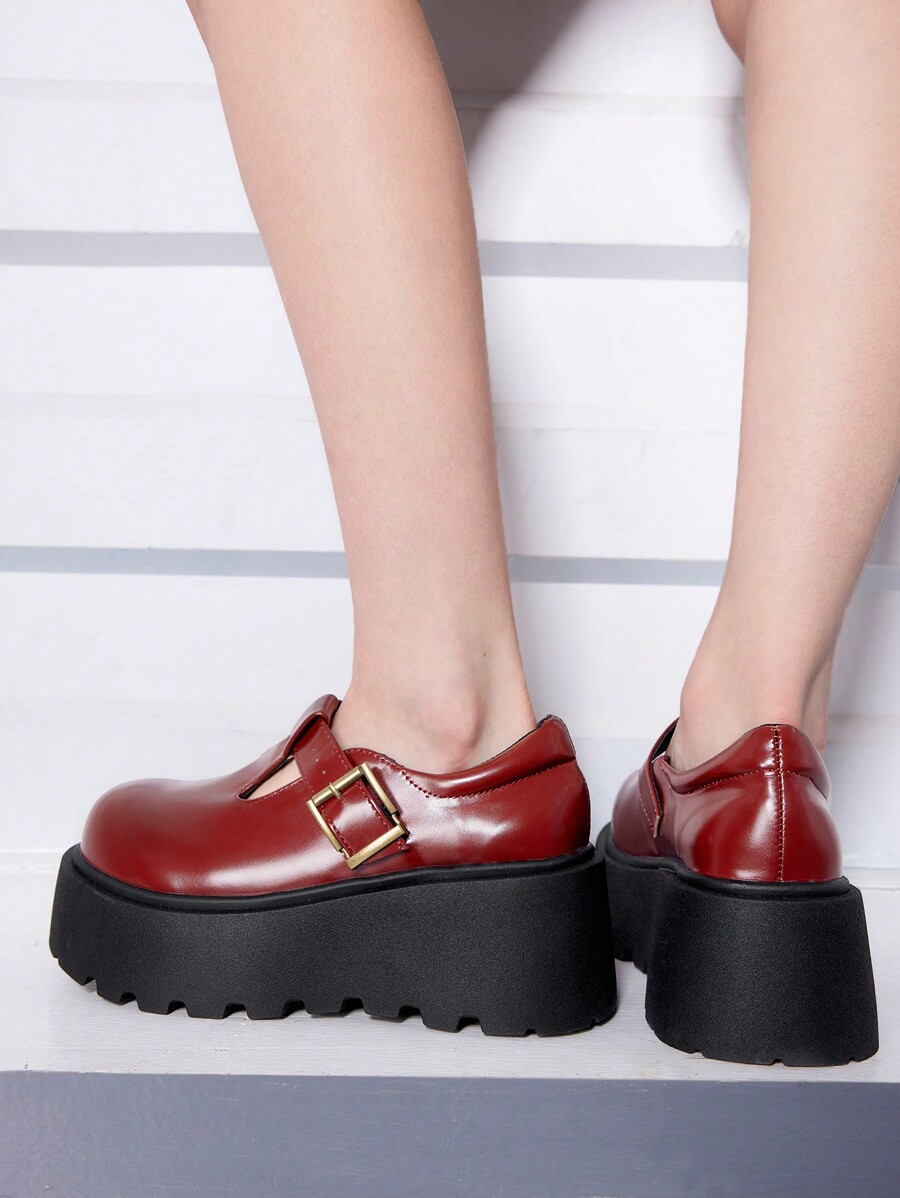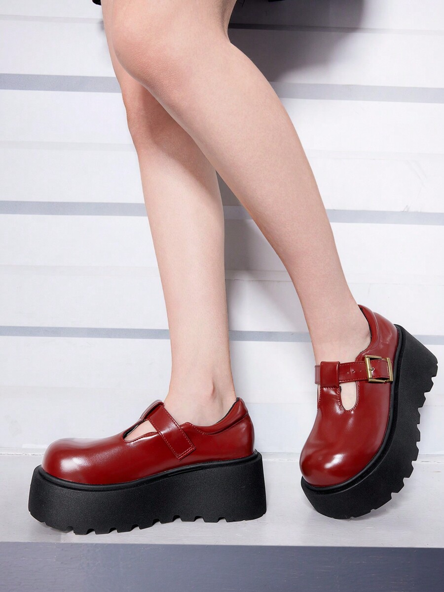 Grunge Punk Women Mary Jane Shoes, Red Gothic Lolita College Style Buckle Strap Platform Oxfords, Casual & Punk Style For Daily Wear For Christmas And New Year Holiday Vibe Fall And Winter