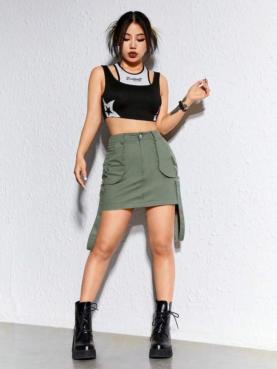Grunge Punk Women'S Pocketed Cargo Style Skirt