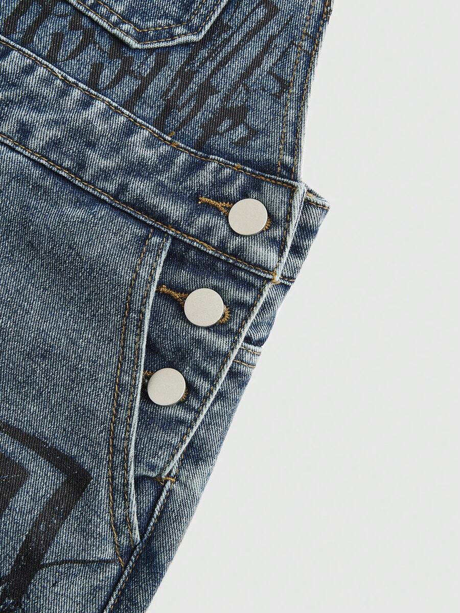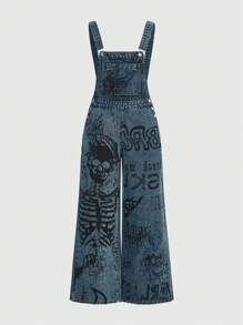 Grunge Punk Women'S Skull Wing Slogan Print Denim Overalls