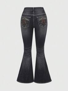 Grunge Punk Women's Casual Washed Vintage Embroidered Flare Jeans