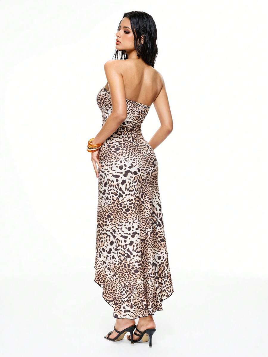 Grunge Punk Women's Concert Attire Women's Sexy Leopard Print Hollow Asymmetric Hem Mid-Length Dress, Summer