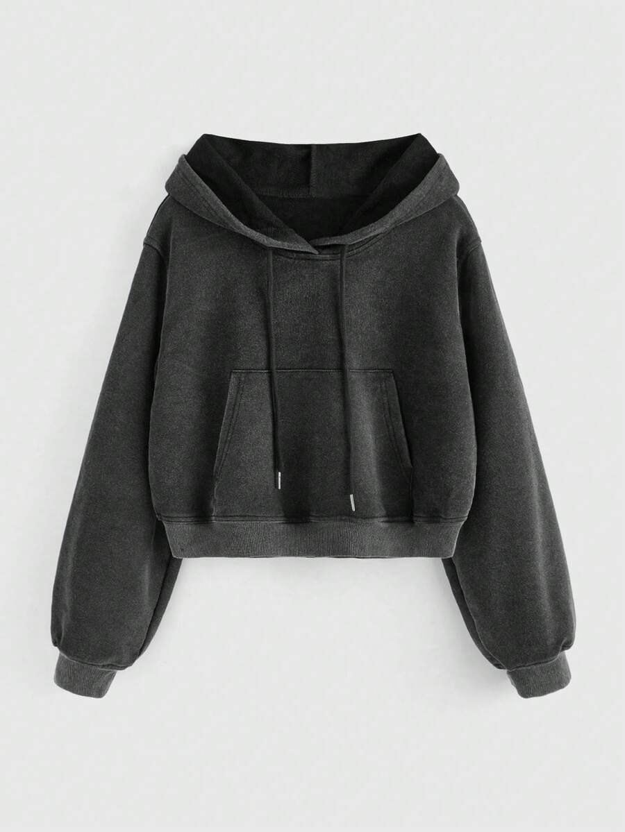 Grunge Punk Women's Cropped Distressed Hooded Sweatshirt
