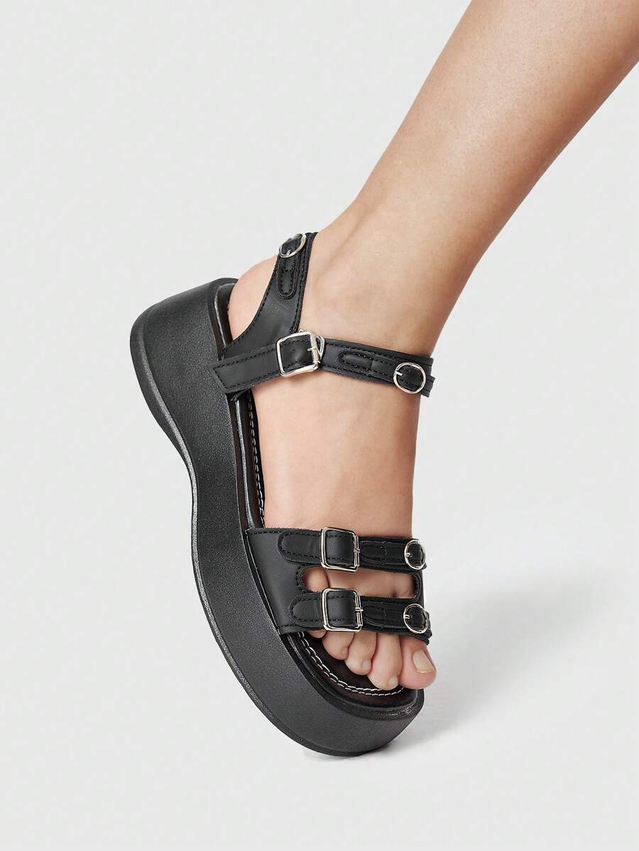 Grunge Punk Women's Dark Goth Rock Punk Belt Buckle Gothic Shoes Peep Toe Ankle Strap Summer Platform Wedge Sandals Spring Shoes Spring Break Easter