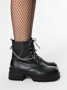 Grunge Punk Women's Dark Punk Goth Lace-Up Bat Motorcycle Boots, Platform Thick Sole Riding Boots, Knee-High Leather Boots With Metal Chain, Ankle Boots And Short Boots