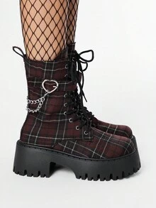 Grunge Punk Women's Dark Punk Gothic Lace-Up Motorcycle Boots, Platform Thick Sole Ankle Boots And Short Boots