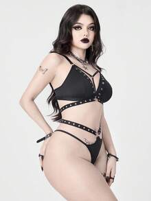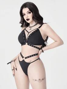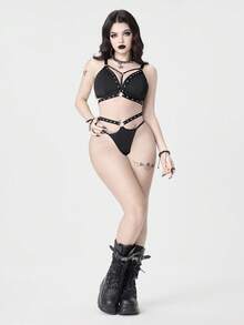 Grunge Punk Women's Dark Punk Music Festival Corset Thong Lingerie Set