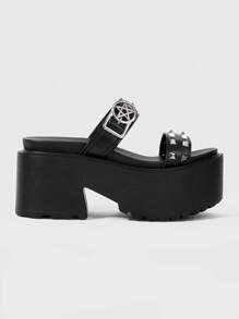 Grunge Punk Women's Dark Rock Punk Goth Shoes - Studded Roman Beach Sandals, Strap Dress Shoes, Wedge Thick Sole Sandals