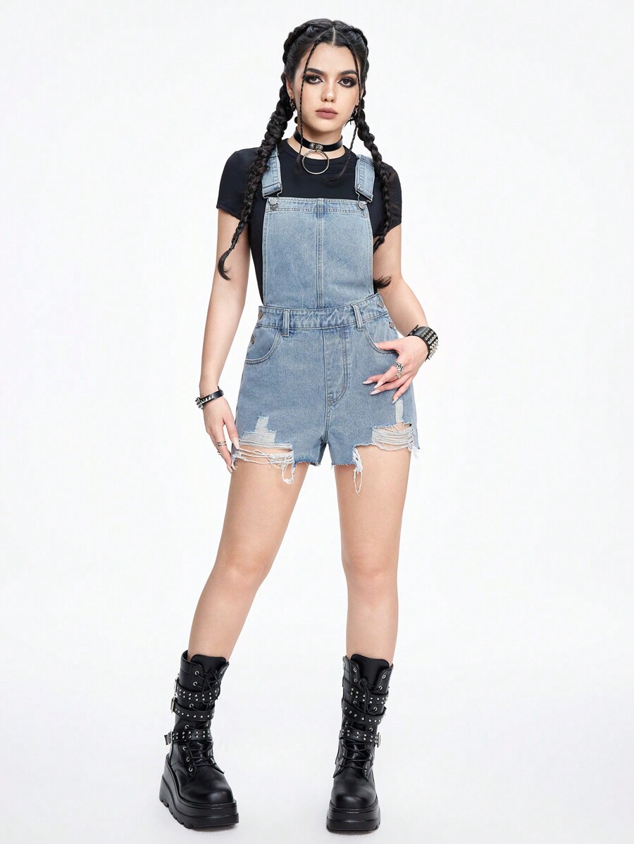 Grunge Punk Women's Denim Overalls And Jumpsuits