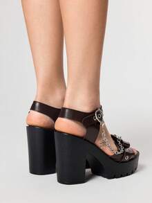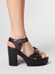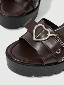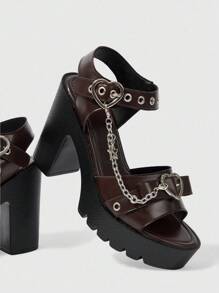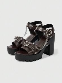 Grunge Punk Women's Elegant Fashion Heart & Star Metal Chain Design High Heel Sandals, Waterproof Platform, Punk Style Round Toe Roman Sandals, Suitable For Party, Daily Wear, Evening Dress, Height Increasing And Leg Lengthening, Comfortable Versatile High Heels