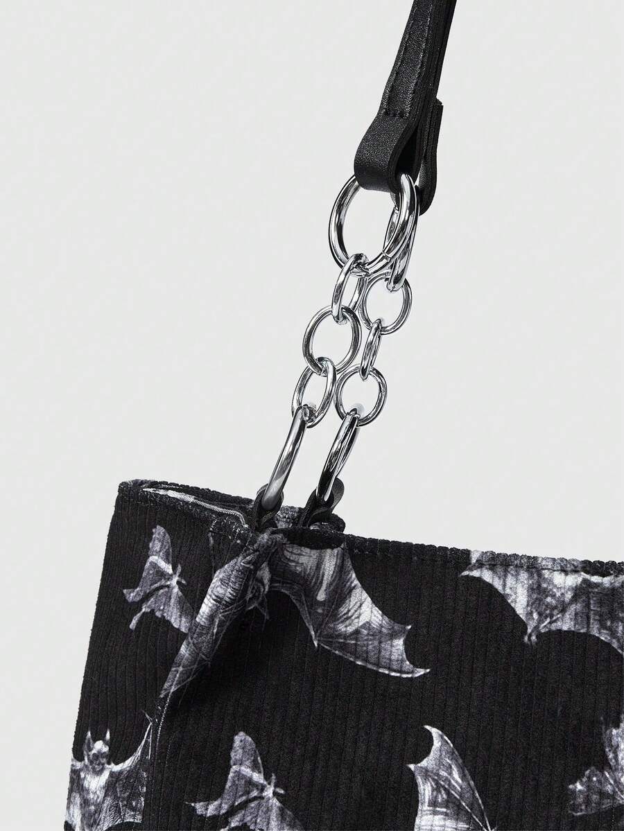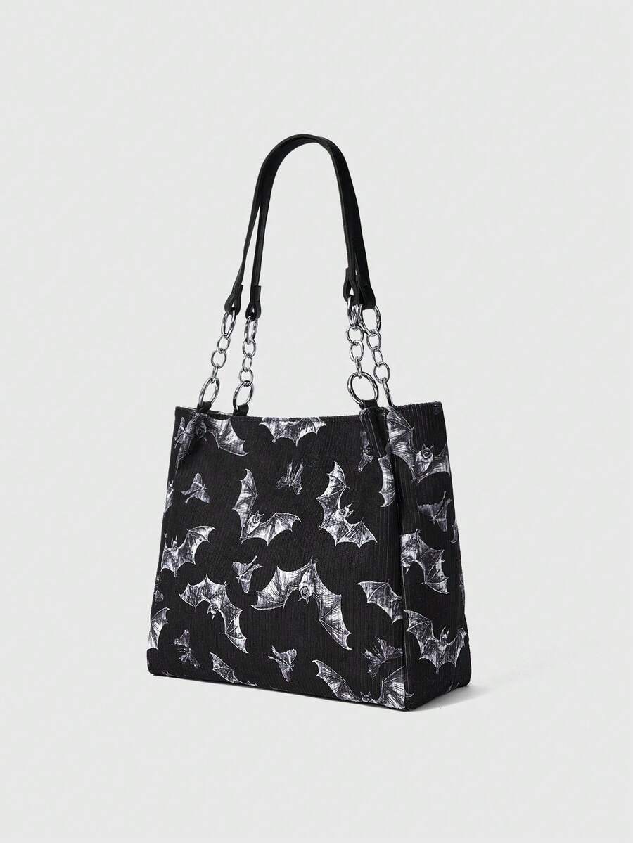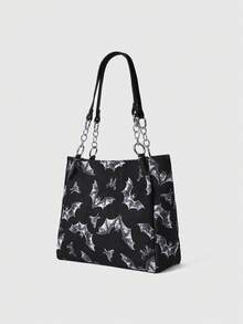 Grunge Punk Women's Fashionable Large Capacity Bat Pattern Shoulder Bag