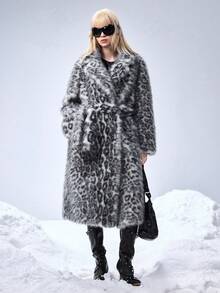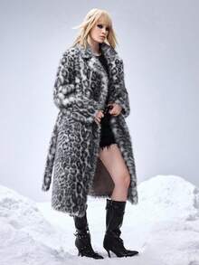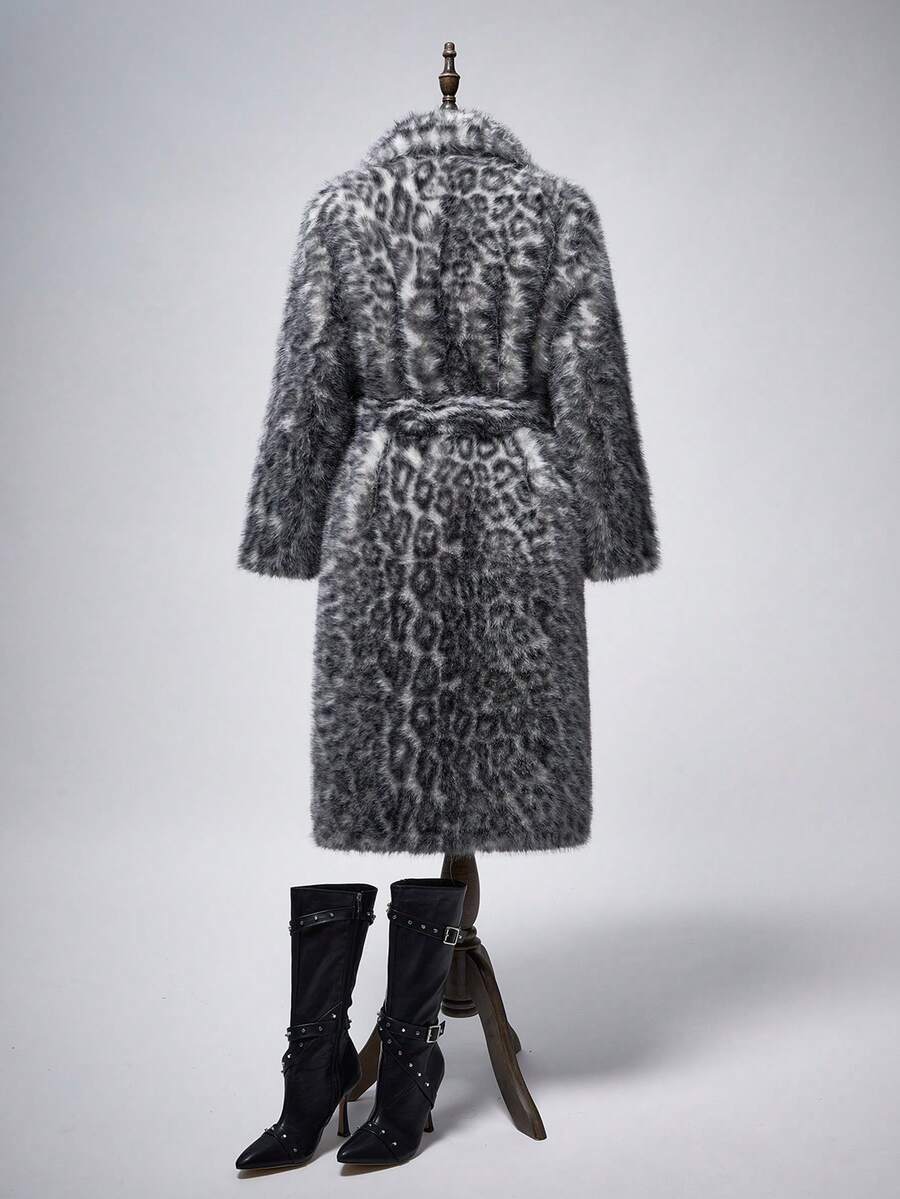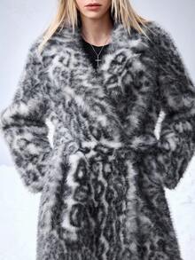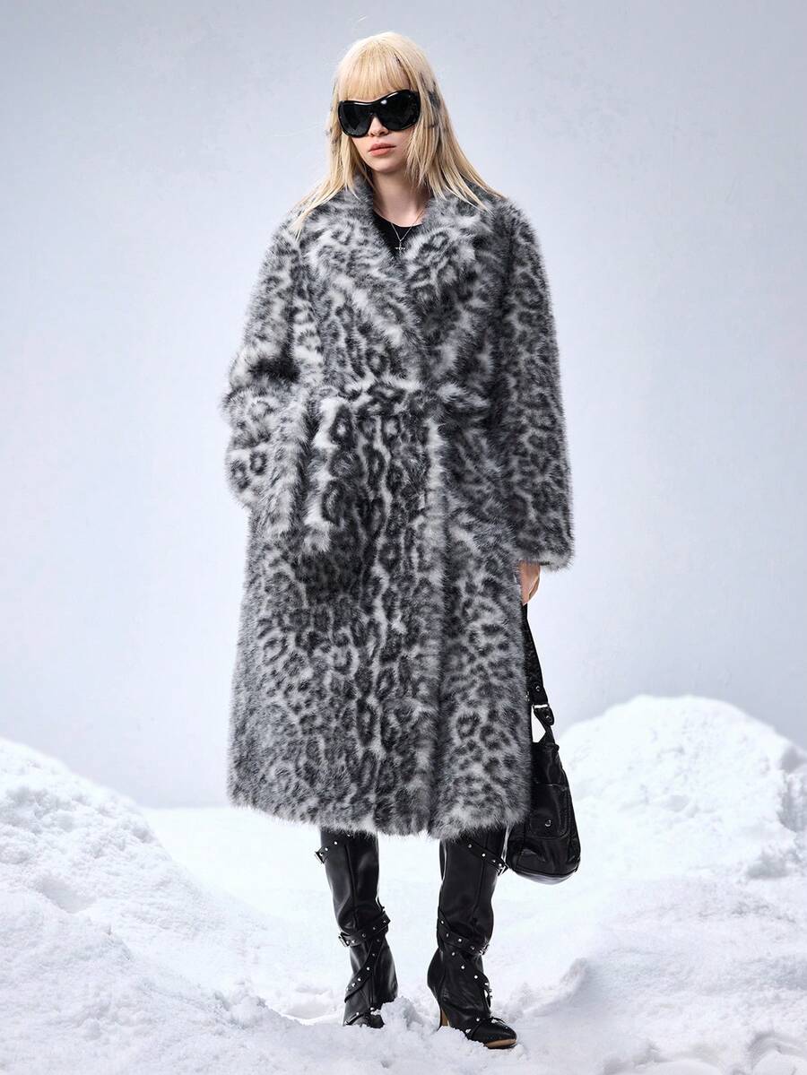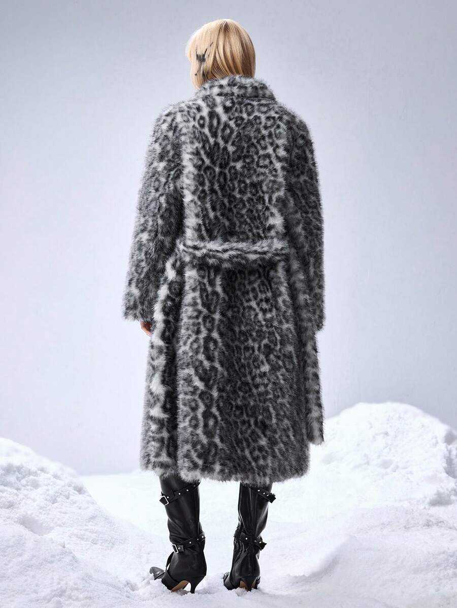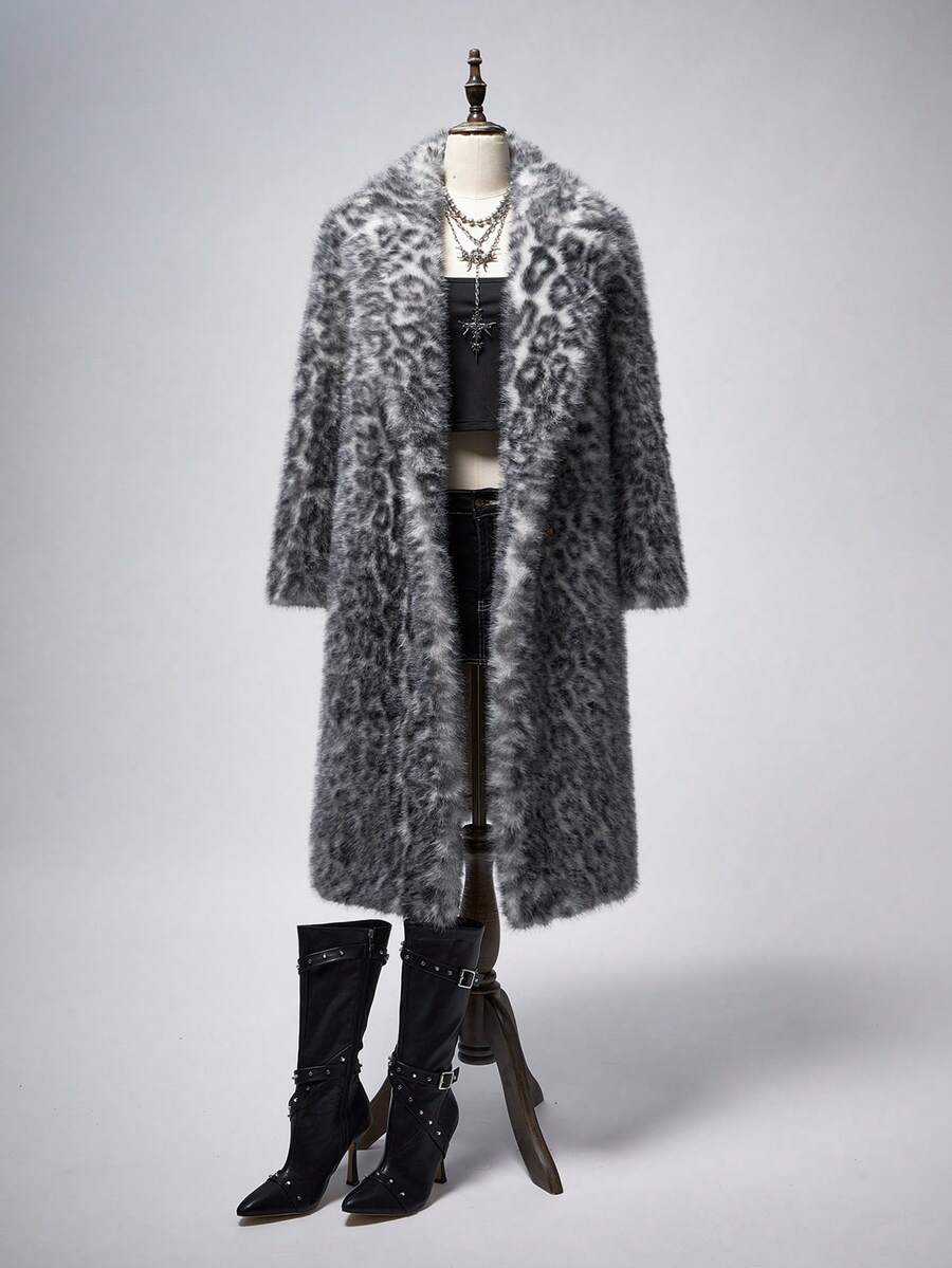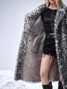 Grunge Punk Women's Fashionable Leopard Print Faux Fur Coat, Autumn/Winter