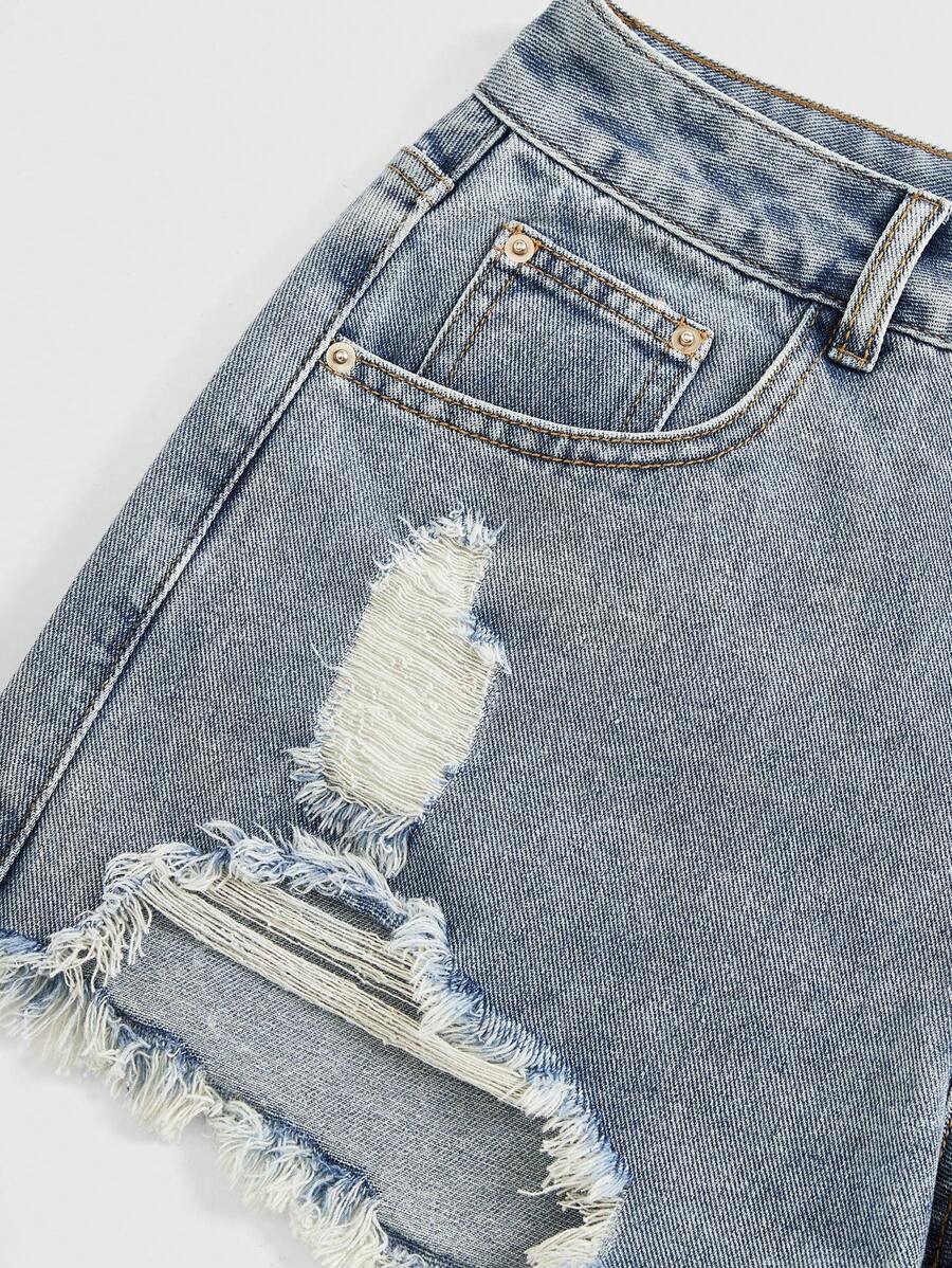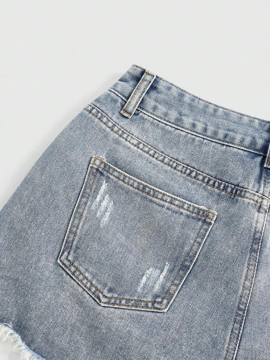 Grunge Punk Casual Basic Ripped Denim Shorts For Easy Matching, School