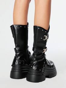 Grunge Punk Women's Goth Punk Rock Ankle Boots With Side Zipper, Rivet, Waterproof Platform, Chunky Heel Motorcycle Boots, Halloween
