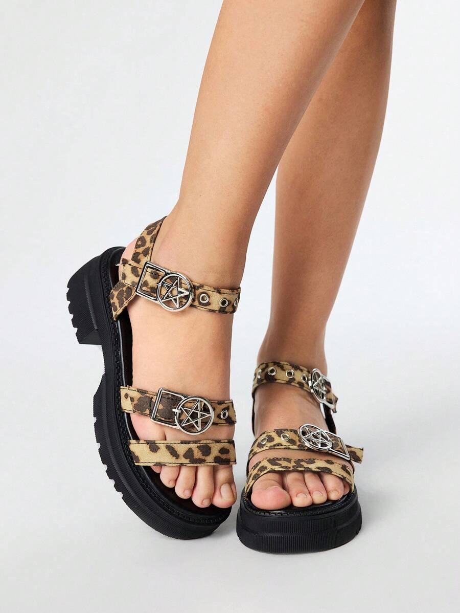 Grunge Punk Women's Gothic Punk Rock Sandals, Ankle Strap Wedge Platform Beach Vacation Sandals, European And American Style