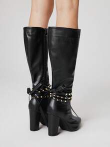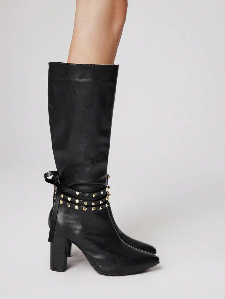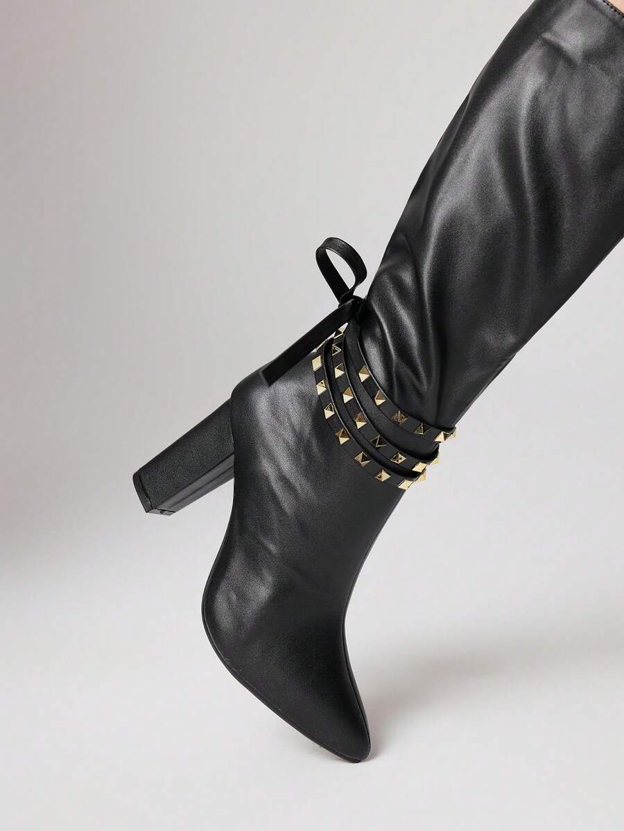 Grunge Punk Women's High Heel Boots, Elegant Pointed Toe Fashion PU Thick Heel Ankle Boots, Versatile For Autumn/Winter