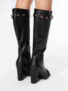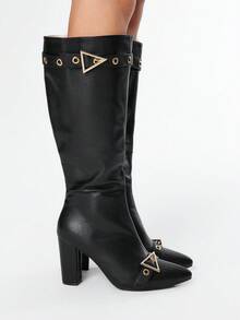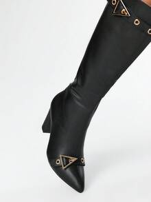 Grunge Punk Women's High Heel Boots, Versatile Elegant Pointed Toe Fashion PU Thick Heel Boots, Autumn/Winter