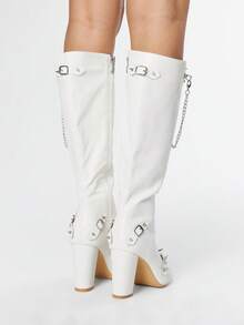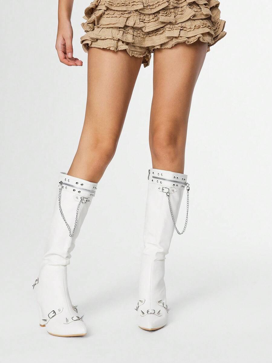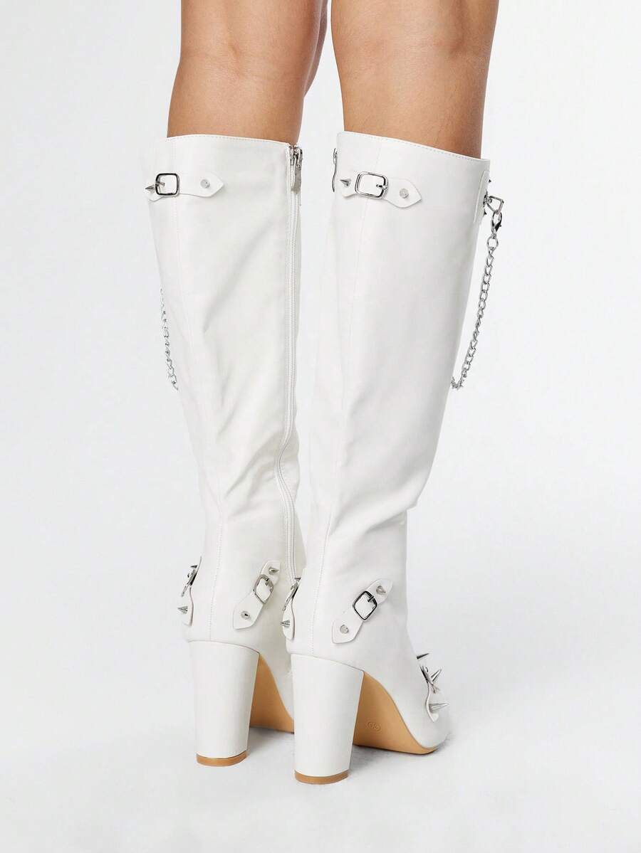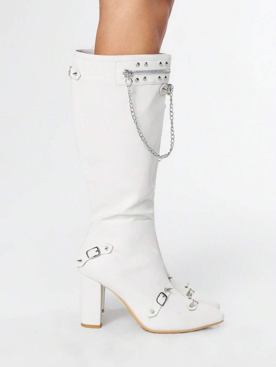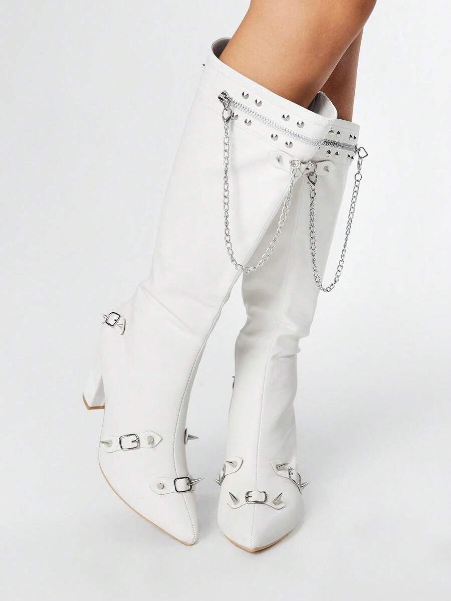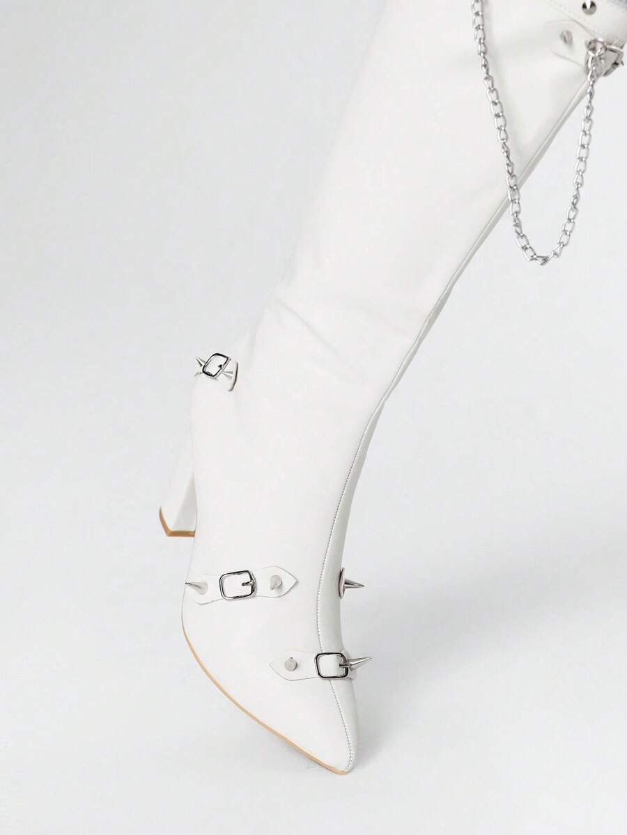 Grunge Punk Women's High Heel Boots, Versatile Elegant Pointed Toe Fashion PU Thick Heel Boots, Autumn/Winter