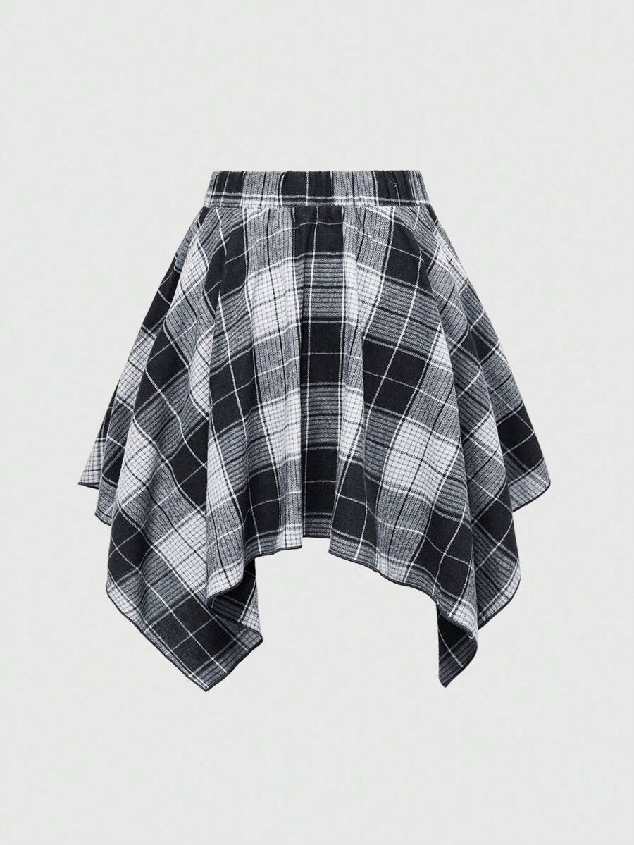 Grunge Punk Spring Casual Plaid Women's Kpop Grunge Vintage Plaid Lace-Up Asymmetric Layered Skirt