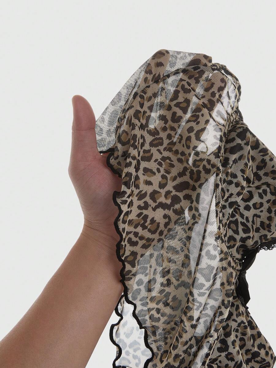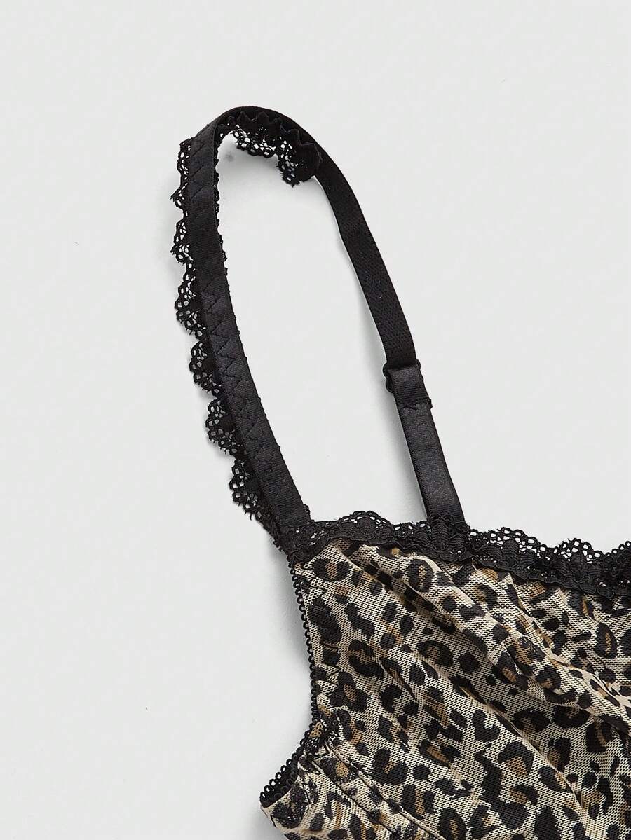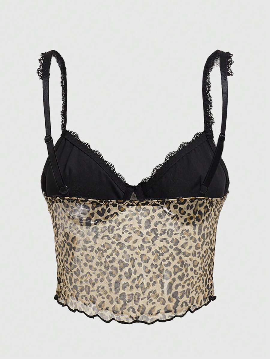 Grunge Punk Women's Plus Size Fashionable Leopard Print Mesh & Lace Splice Cropped Tank Top For Summer