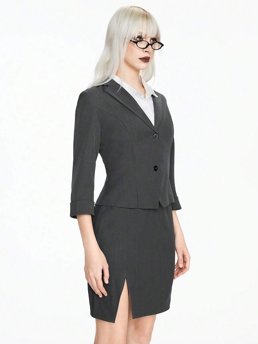 Grunge Punk Women's Retro Office "Siren" Style Fitted Y2K Sexy Blazer And Mini Skirt 2-Piece Set