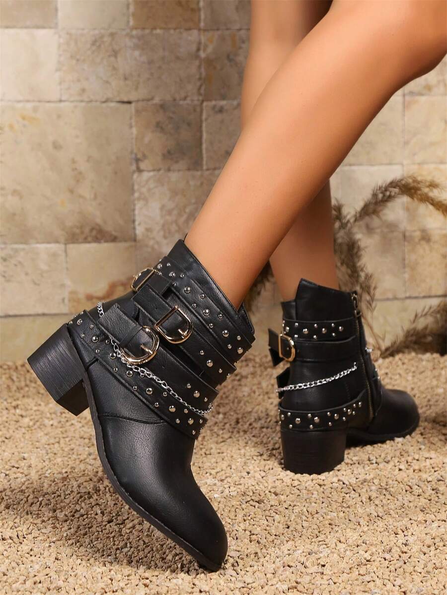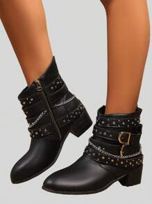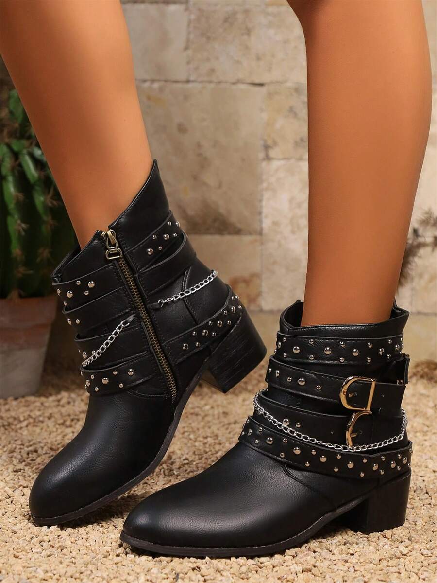 Grunge Punk Women's Rivet Decor Western Style Pointed Toe Ankle Boots & Short Boots