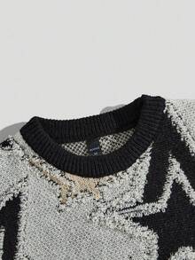 Grunge Punk Women's Round Neck Long Sleeve Pentagram Jacquard Loose Casual Sweater, Autumn/Winter