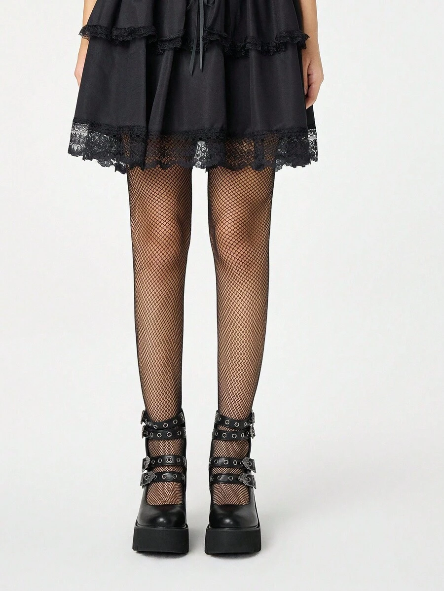 Grunge Punk Women's Vintage Sexy Hollow Out Chunky Heel Ankle Boots, Gothic Punk Style Metal Buckle Strap High Platform Waterproof Party Performance Nightclub Comfortable Short Boots