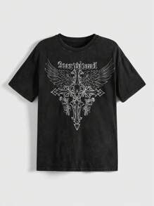 Grunge Punk Women's Wing Cross Printed T-Shirt, School