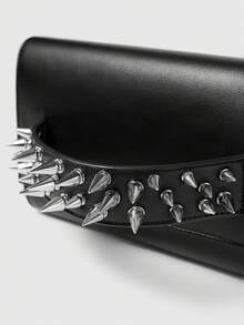 Grunge Punk Y2K Baddie Rivet Decor Soft Leather Casual Clutch Bag, Fashion Versatile Shoulder/Crossbody Bag For Women, Subculture Goth Style, Black