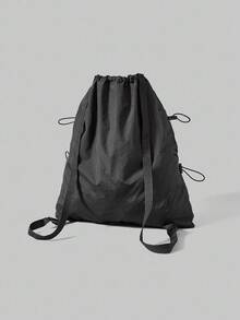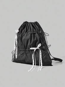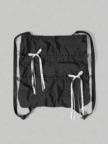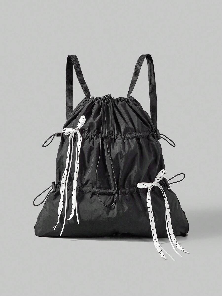 Grunge Punk Y2K Cute & Sexy Bow Drawstring Backpack, Minimalist Silver Tech-Inspired Cinch Pouch, Waterproof Lightweight Large Capacity Foldable Storage Bag, Gym Bag, Suitable For Casual, Travel, Commute And Daily Use