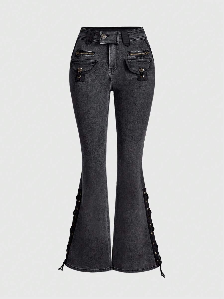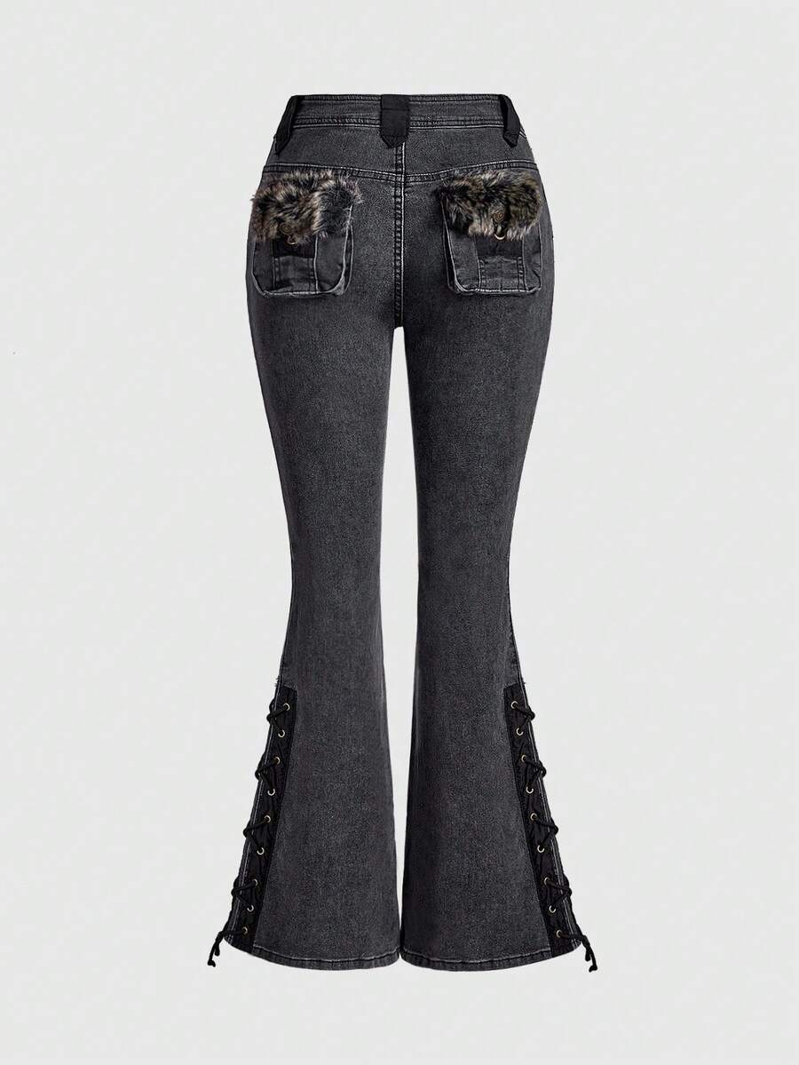 Grunge Punk Y2K Harajuku Gyaru Gal Style Patchwork Fuzzy Super Low-Rise Mini Denim Jeans For Women