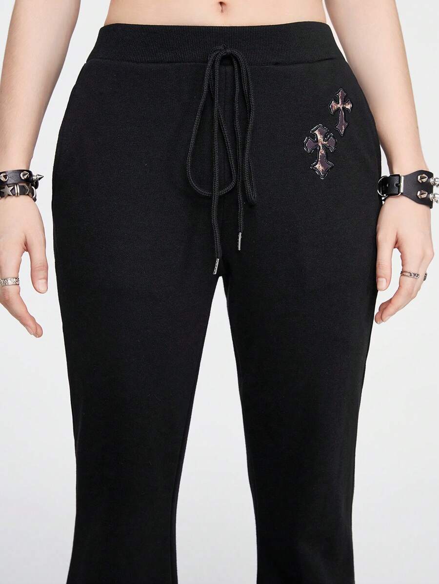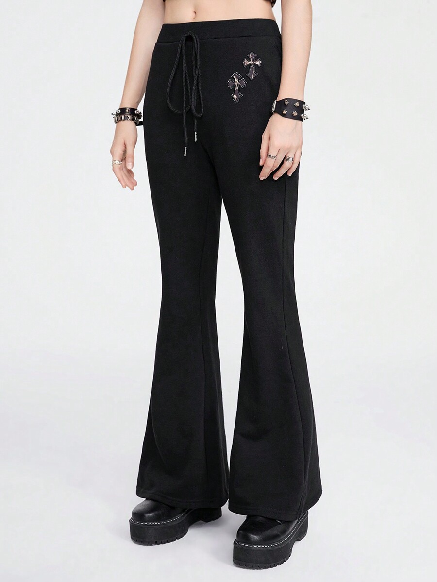 Grunge Punk Y2K Leopard Print Cross Embroidery Women's Flare Pants
