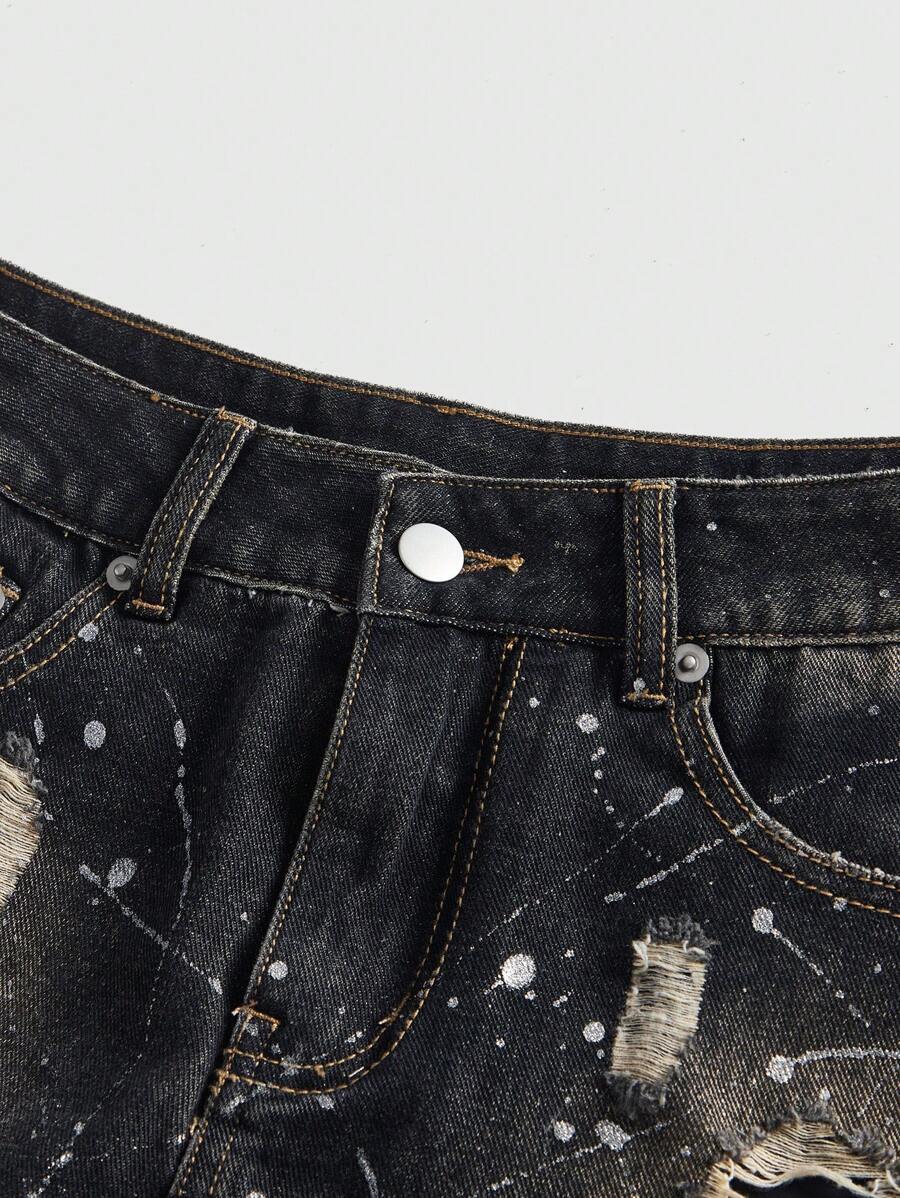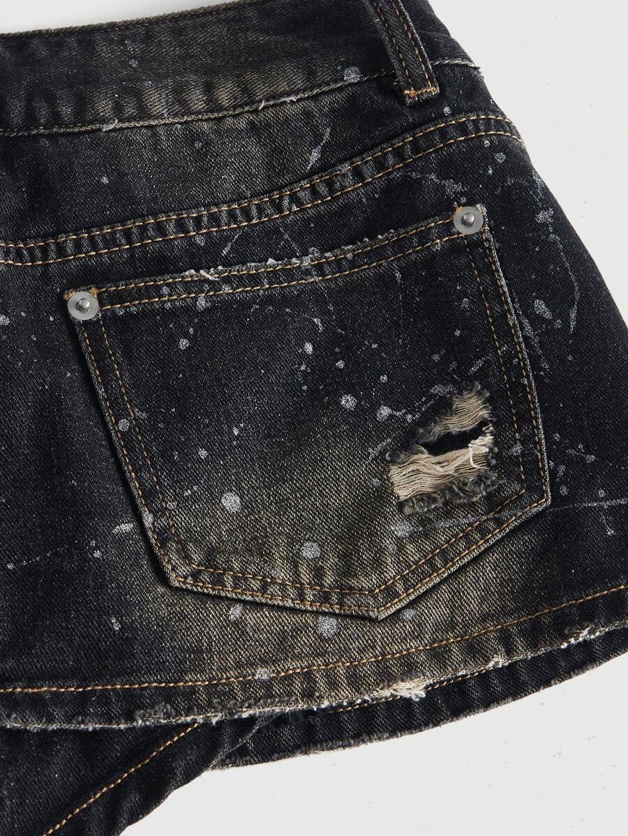 Grunge Punk Y2K Retro Gyaru Distressed Washed Silver Hardware Mini Denim Skirt