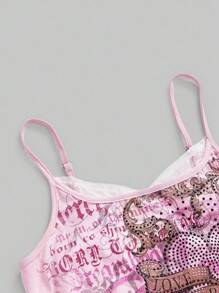 Grunge Punk Y2K Retro Romantic Rose Floral & Vine Heart Rhinestone Decor Tight Crop Top, Summer Concert Festival