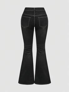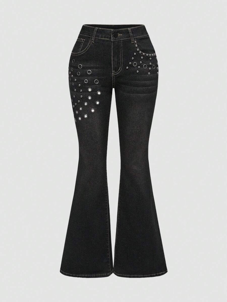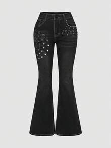 Grunge Punk Y2K Retro Sexy Flare Low Waist Jeans, Punk Rock Metal Style Tight Fit Women Jeans