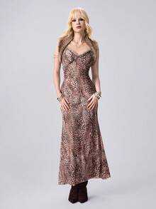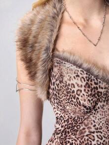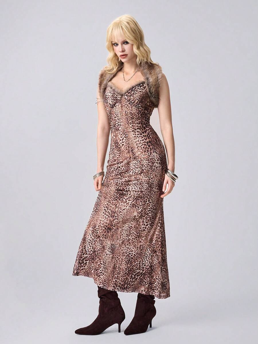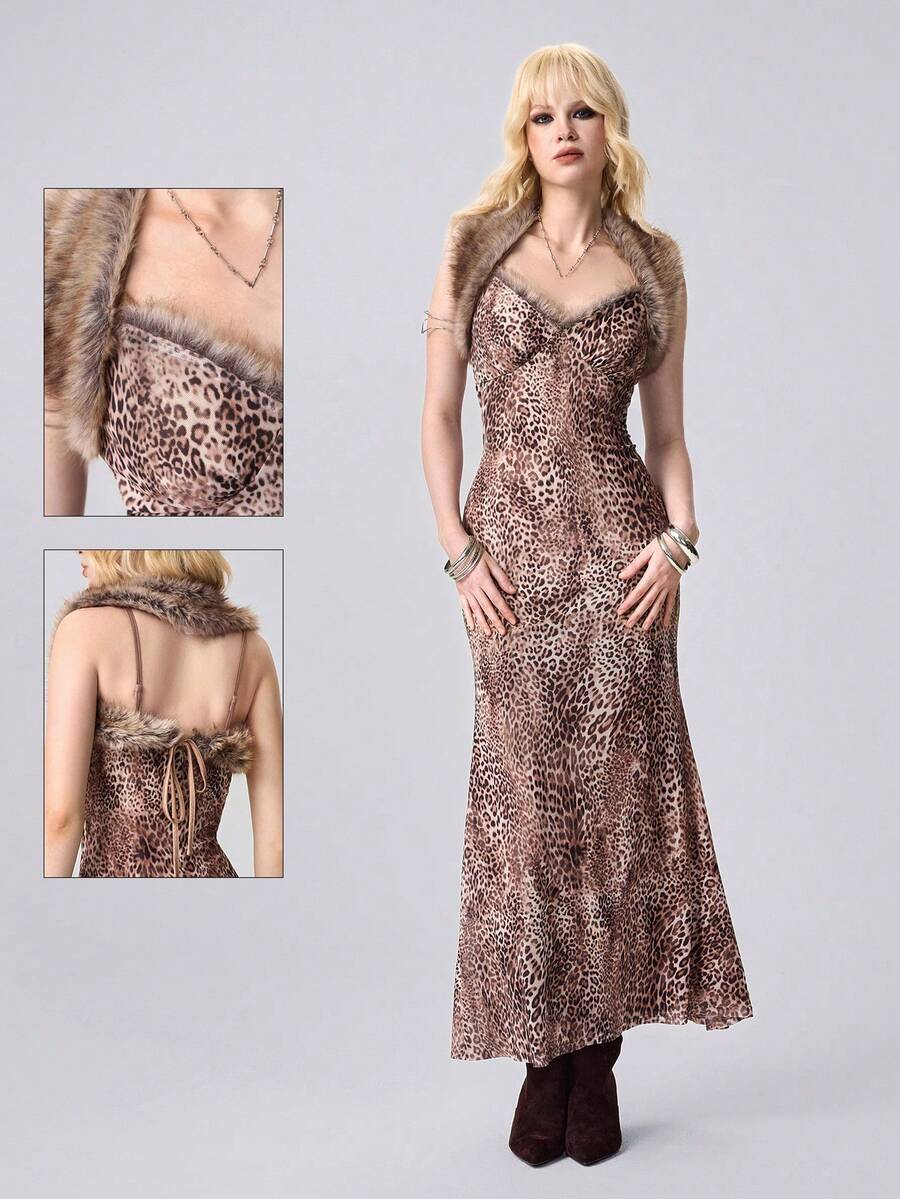 Grunge Punk Y2K Sexy Leopard Print Mesh Mermaid Maxi Dress (Includes Furry Shrug)