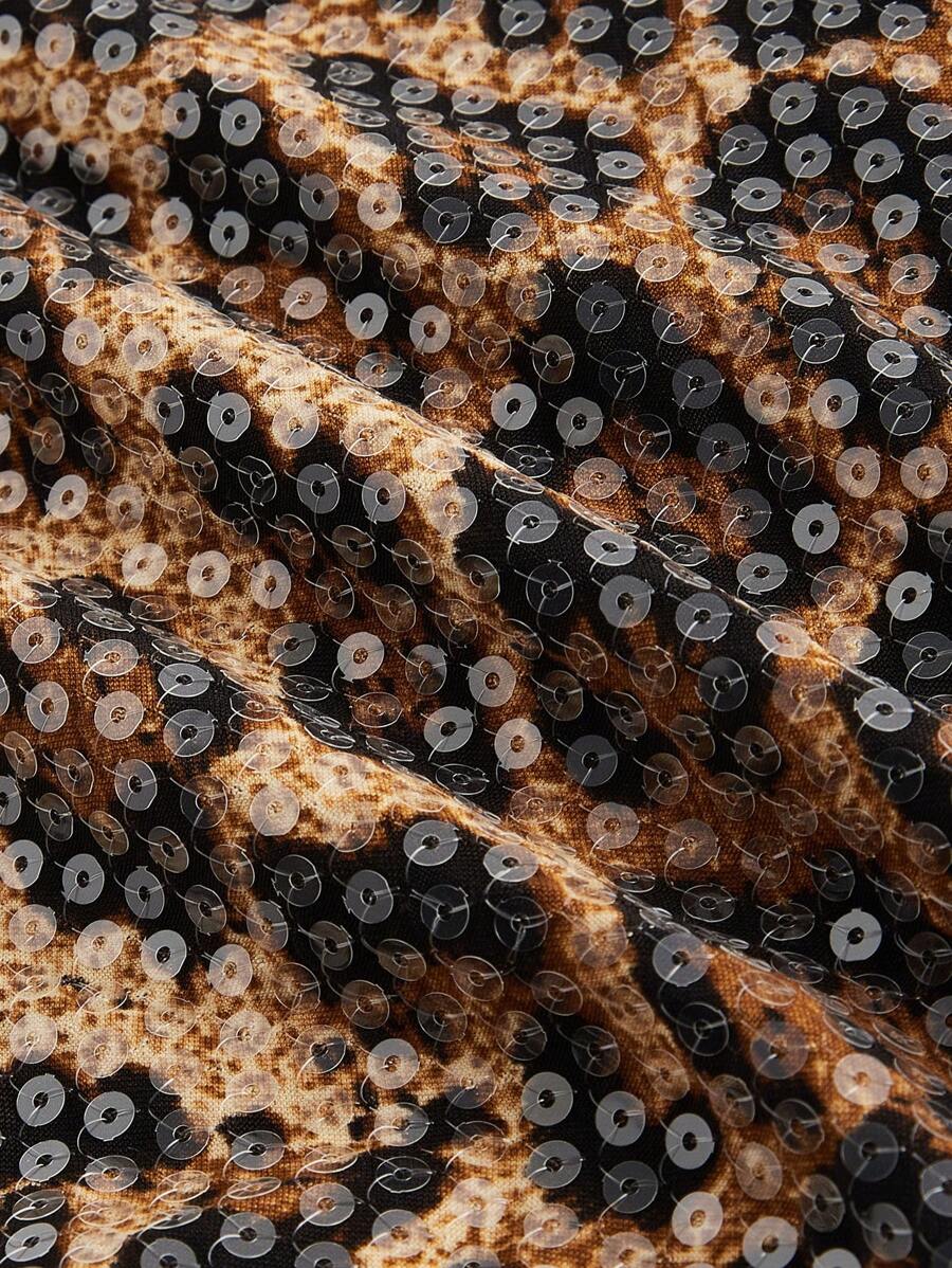 Grunge Punk Y2K Sexy Shiny Leopard Print Tight Crop Top For Women, For Carnival