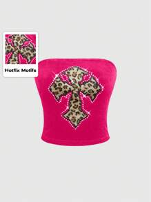 Grunge Punk Y2K Sexy Velvet Patchwork Leopard Cross Rhinestone Applique Cropped Camisole Top