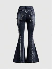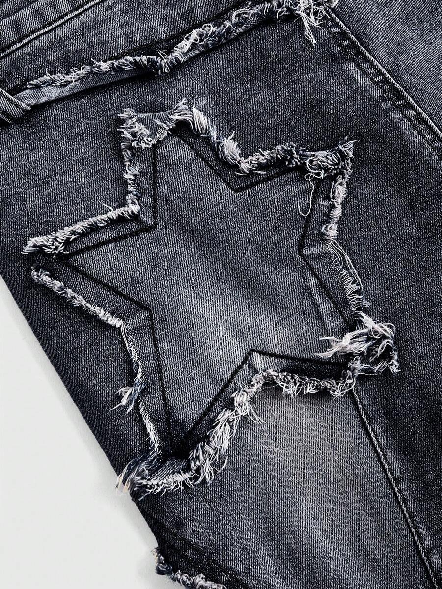 Grunge Punk Y2K Style Star Patch Frayed Skinny Flare Jeans With Washed Effect - Streetwear For Women, School